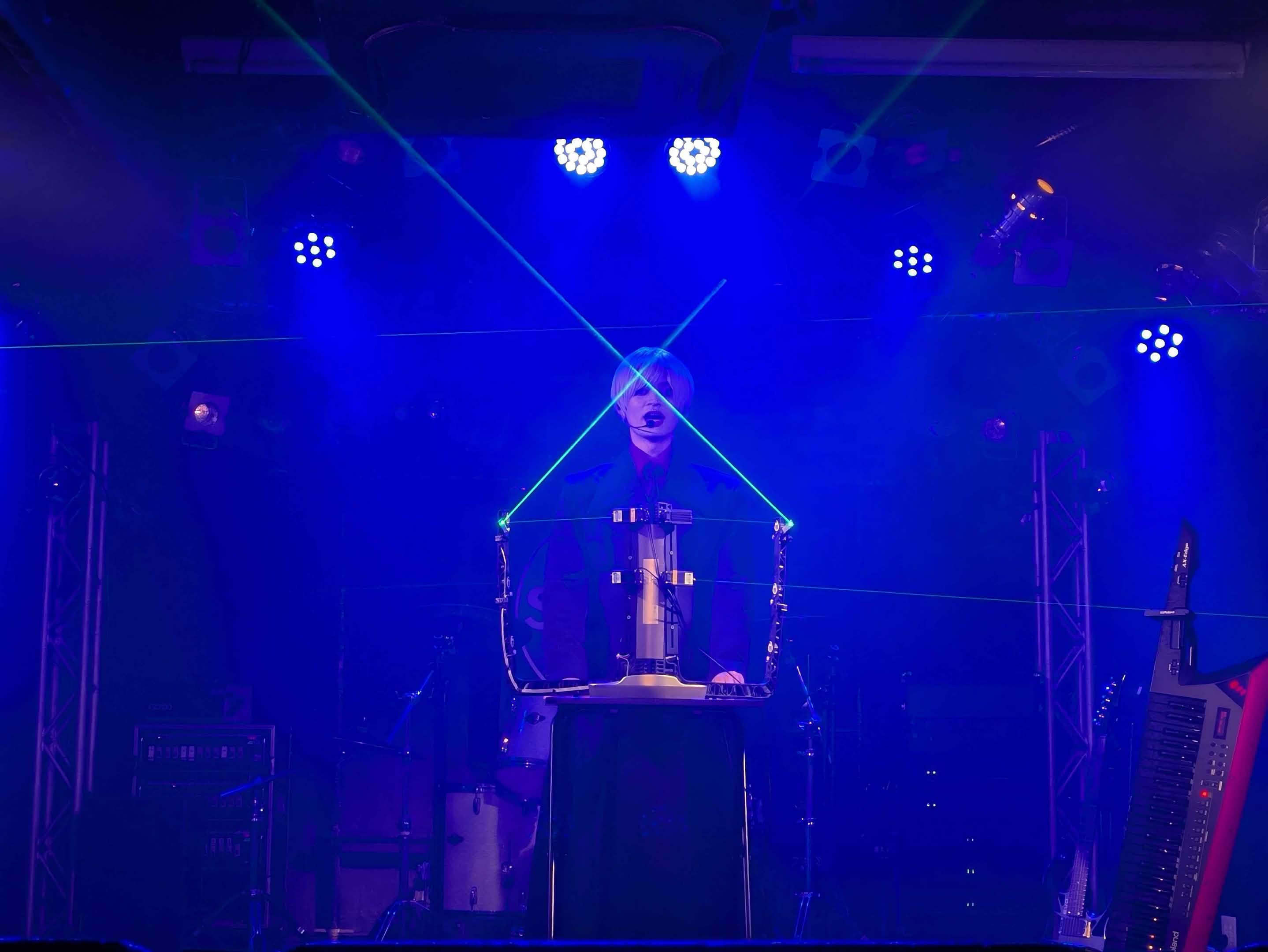 ステージ中央にレーザーハープが配置され、Masyuを上手、FUИAを下手に配置。
